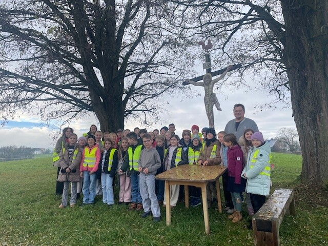 Auf der Fahrt konnten einige Kinder ihren Mitschülern und Mitschülerinnen zeigen, wo sie wohnen und auch der Herr Bürgermeister zeigte den Kindern voller Stolz sein Elternhaus.
